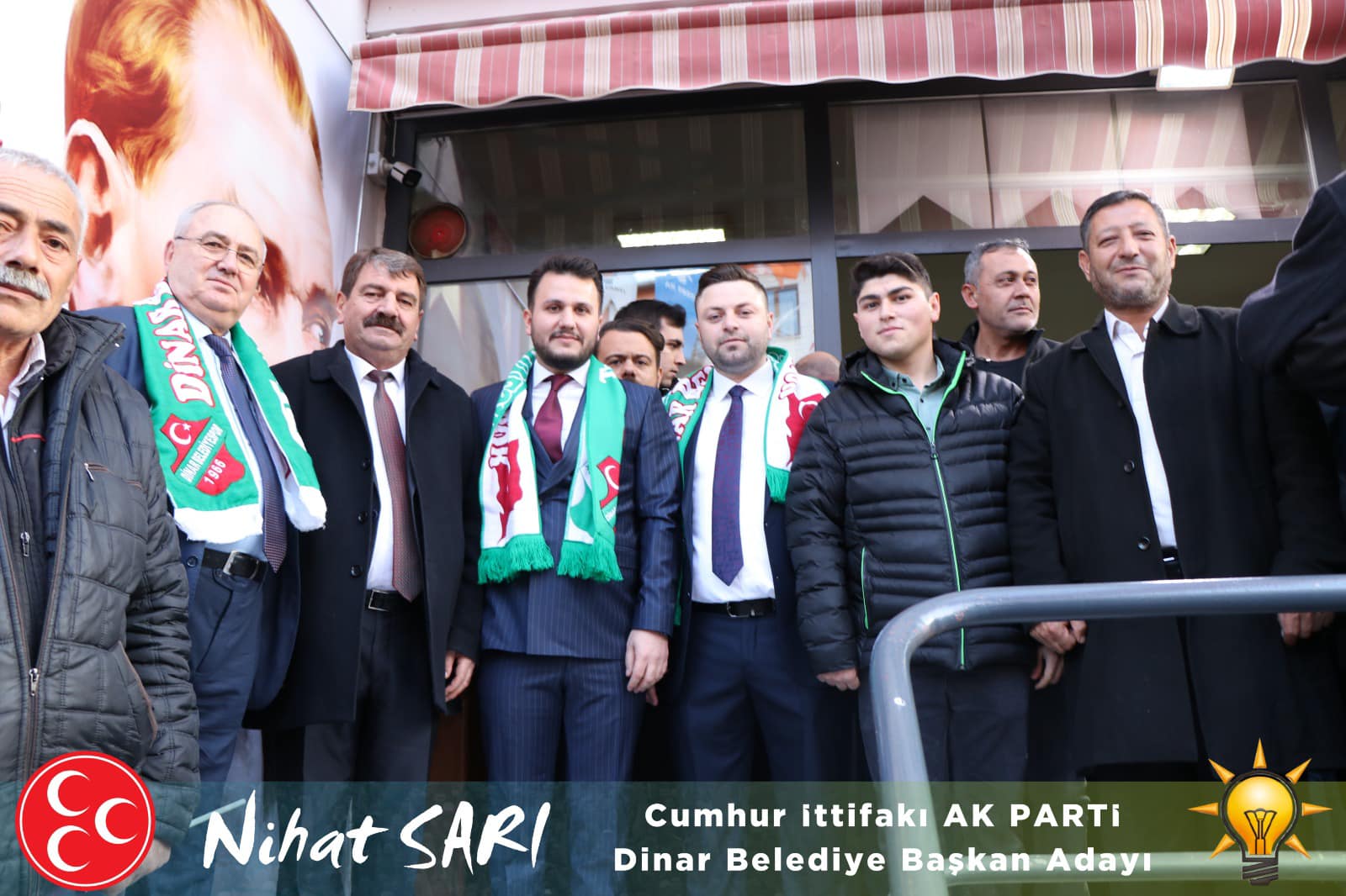 Cumhur İttifakı Ak Parti Belediye Başkan Adayımız Nihat Sarı, Ak Parti Afyonkarahisar Milletvekillerimiz Ali Özkaya ve Hasan Arslan, Milliyetçi Hareket Partisi Afyonkarahisar Milletvekilimiz Mehmet Taytak, Milliyetçi Hareket Partisi Afyon İl Başkanımız Ahmet Kahveci, Ak Parti İlçe Başkanımız İbrahim Özgül, Milliyetçi Hareket Partisi İlçe Başkanımız Mustafa Karahan , Dinar Ülkü Ocakları ve Ak Parti Gençlik Kolları ve Cumhur İttifakı Kadın Kollarımız ile birlikte dualarla açtıkları merkezin hayırlı olmasını diledi.